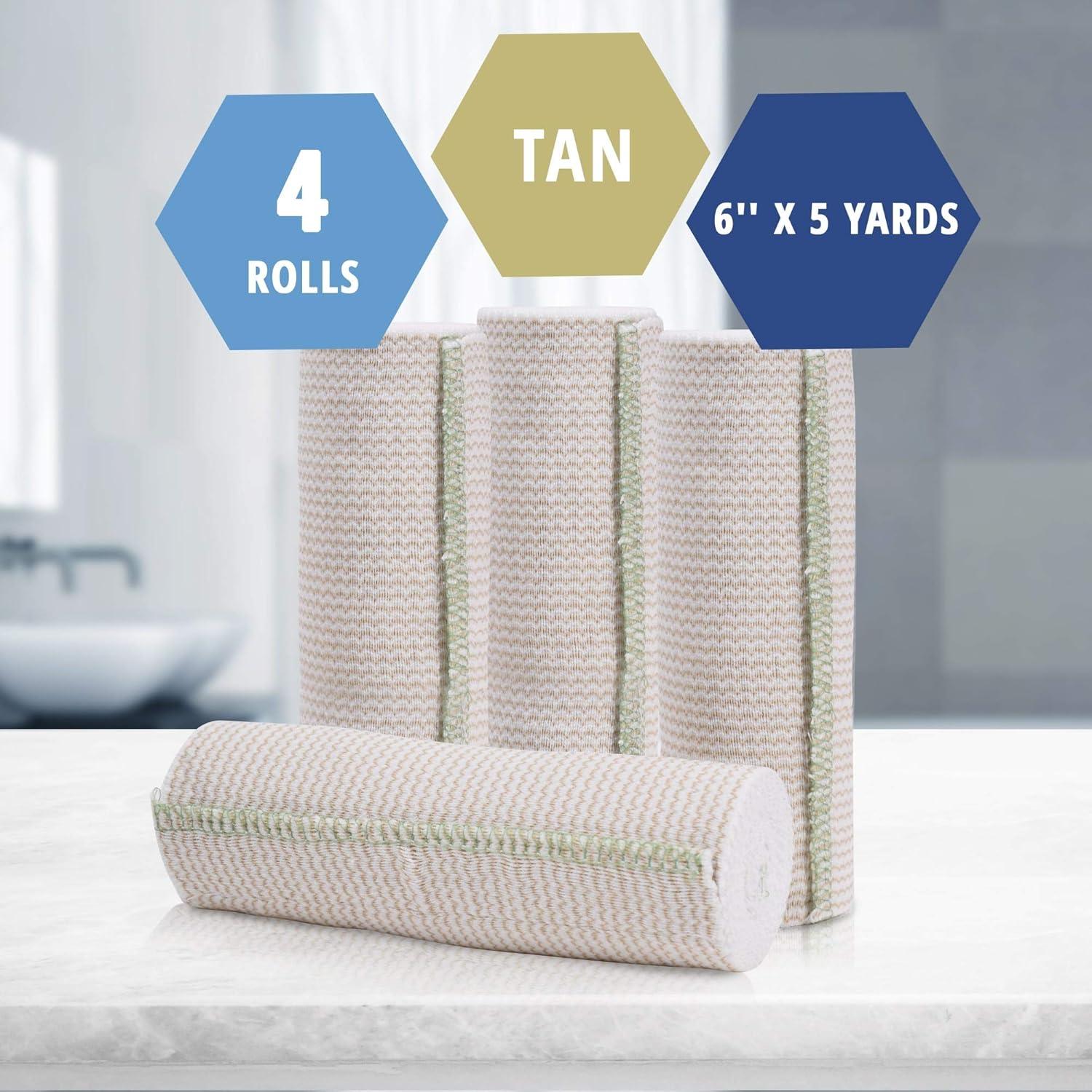 DISCREET TAN COLOR FOR EVERY DAY USE: Each pack contains 4 rolls of 2''x 5 yards first aid self-closure bandages in a discreet tan/beige color. From intense workouts to simply going about your daily tasks, these sport compression wraps will have you covered, without attracting all eyes on them. An excellent choice for men and women, girls and boys!