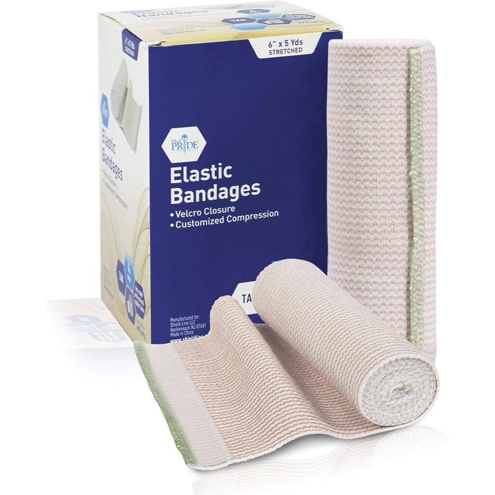 MED PRIDE 2'' x 5 Yards Self Closure Elastic Bandages [4 Rolls] with Hook & Loop Fasteners- Athletic Flex Tape for Customized Compression- Knee Ankle Wrist Bandage Wraps(6x180 Inch (Pack of 4))